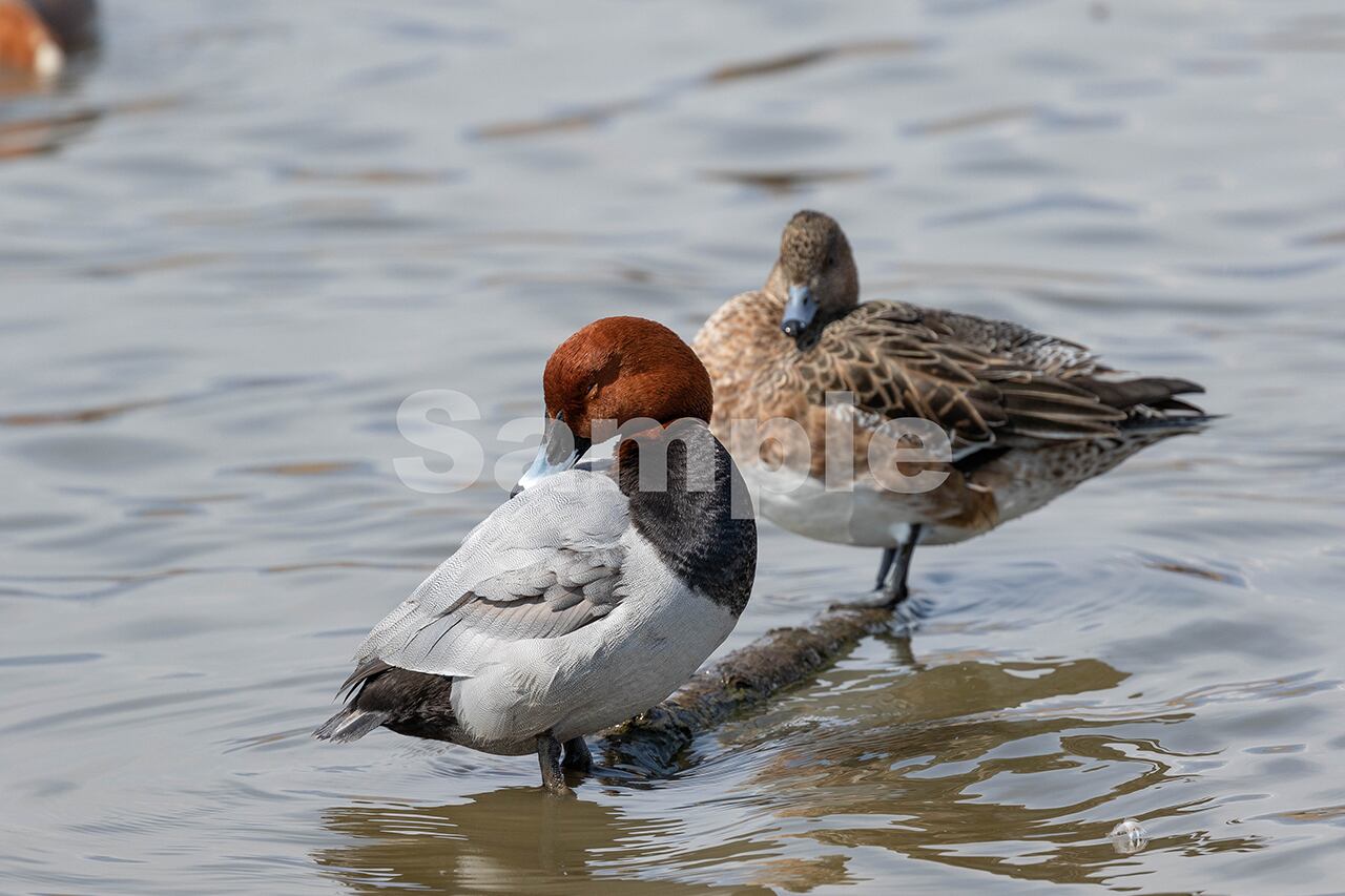 被写体:越冬地の池で羽繕いをするオスのホシハジロ
