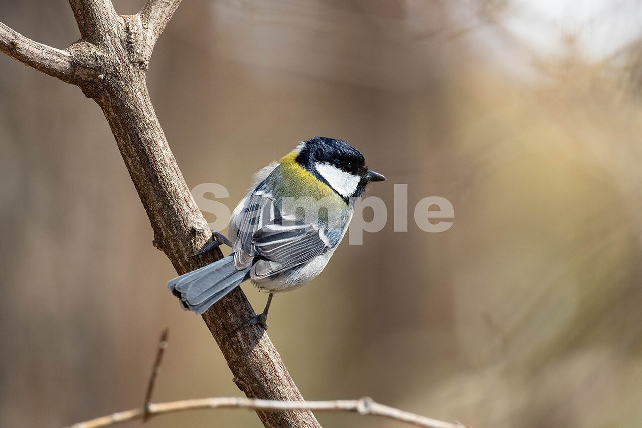 被写体:早春の日差しを浴びてマユミの枝に止まるシジュウカラ