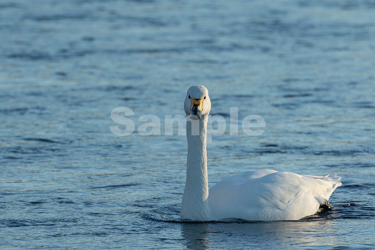 被写体:夕暮れの越冬地の河川寛ぐコハクチョウ