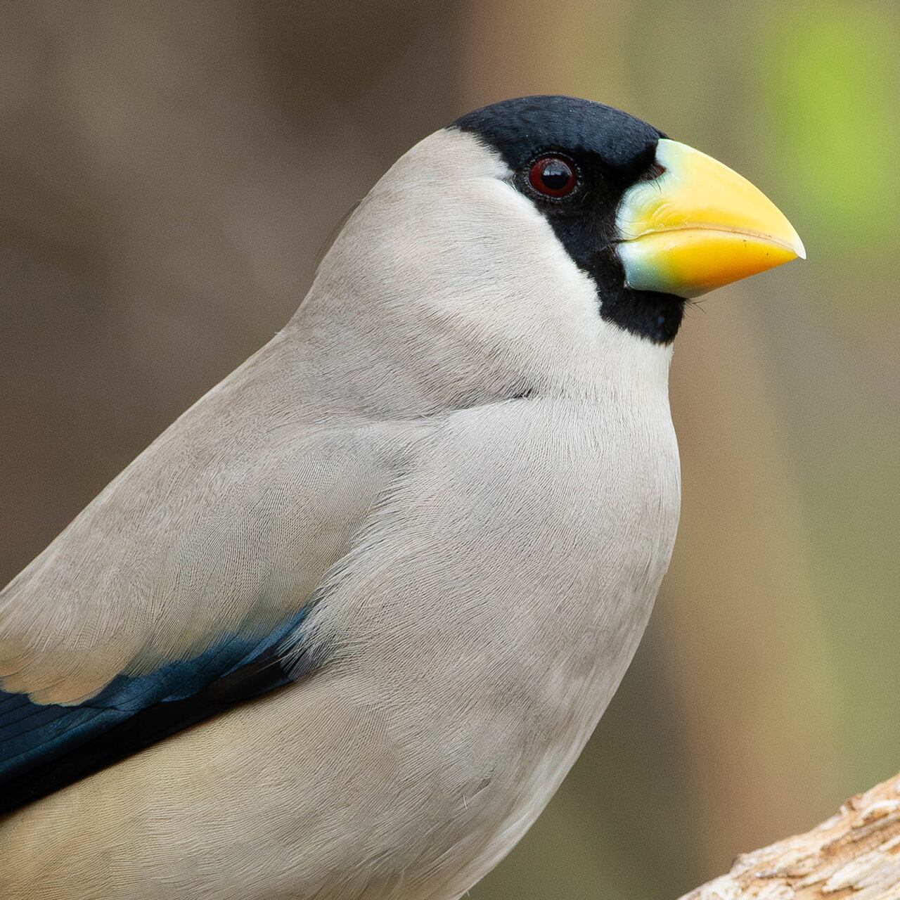 被写体:高原の芽吹き前の林を背景に枯れ枝で休むイカル