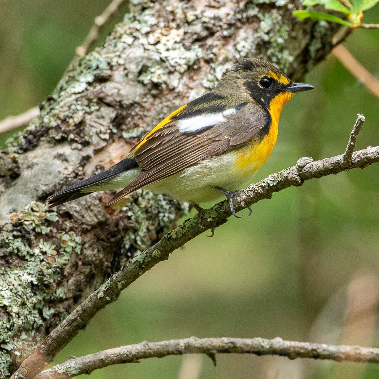 被写体:高原の谷間に縄張りを定めた若いキビタキのオス