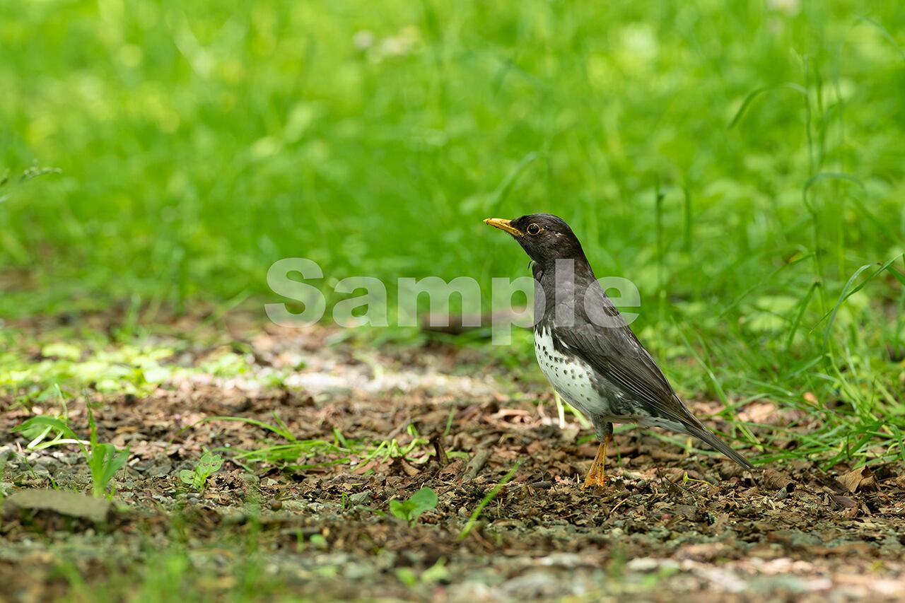 被写体:林間の遊歩道に現れた育雛中のクロツグミのオス