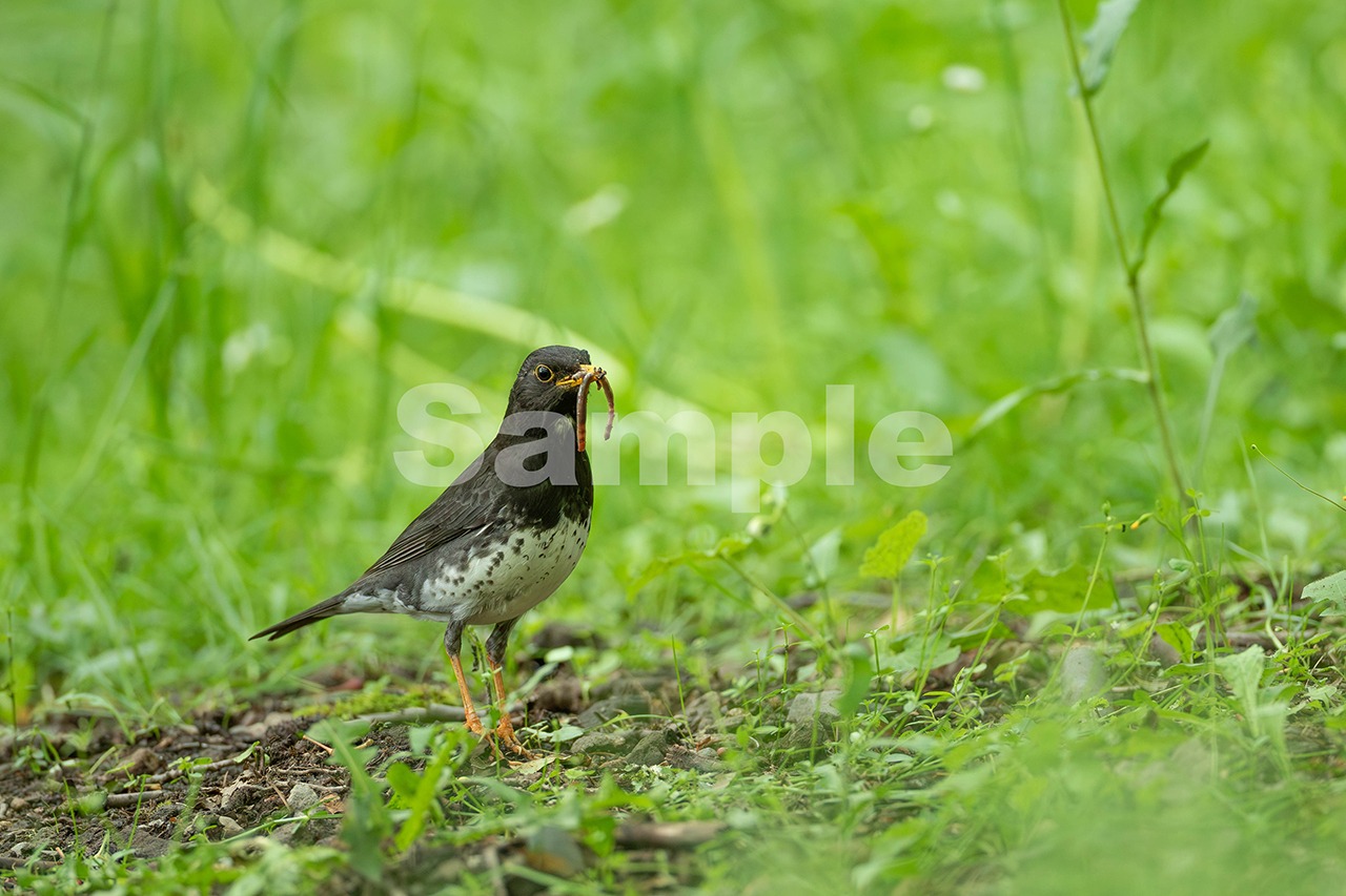 被写体:林間の遊歩道に現れた育雛中のクロツグミのオス