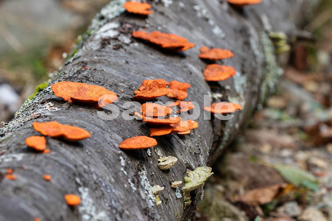 被写体:林道脇の倒木に生えたヒイロタケ