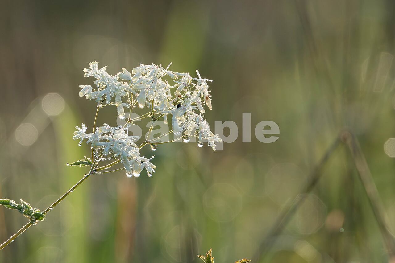 被写体:朝露のジュエリーを纏ったカラマツソウの花