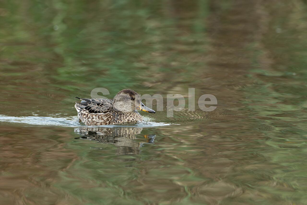 被写体:越冬地の遊水池を泳ぐコガモのメス