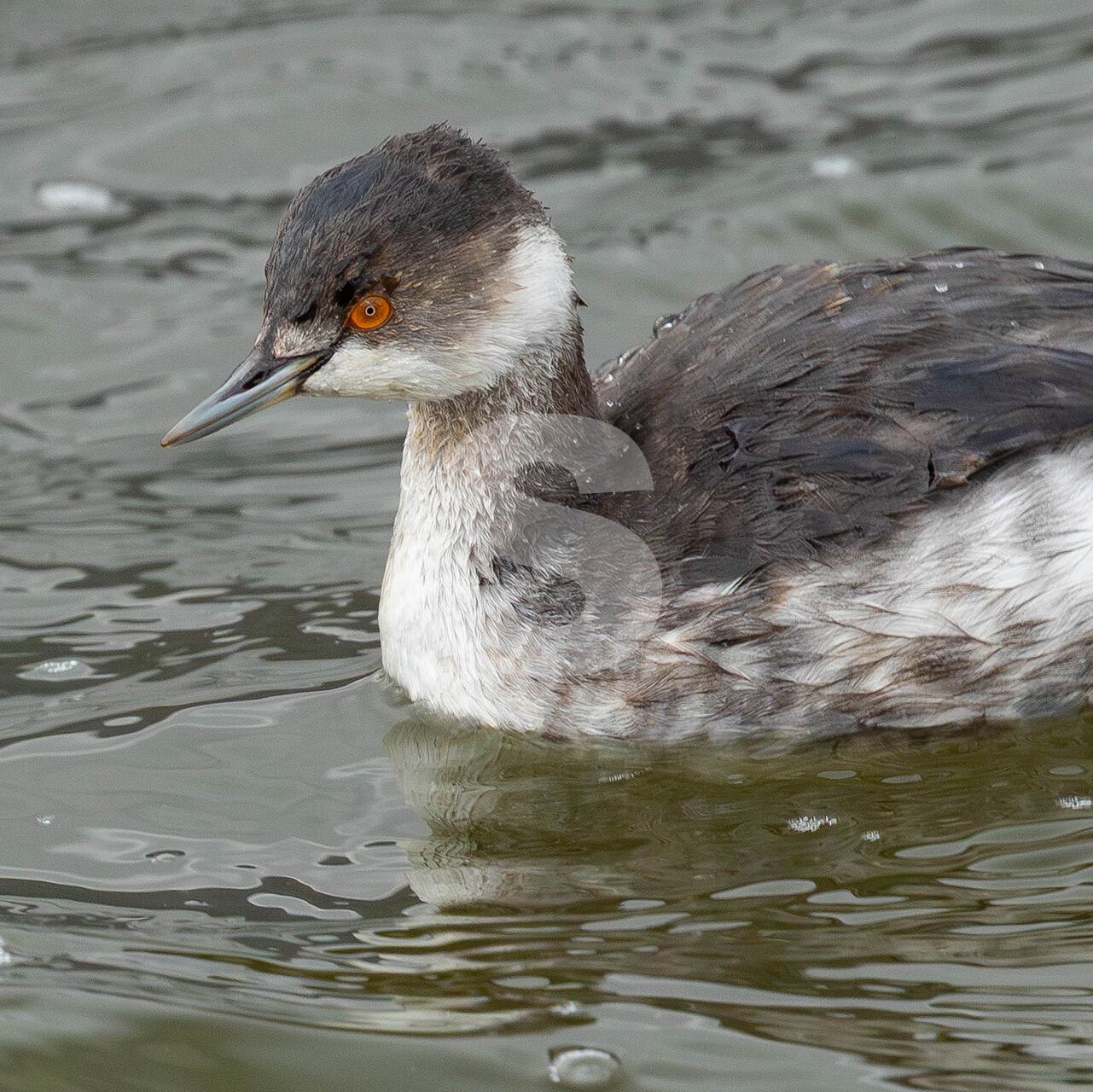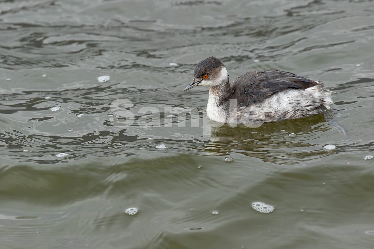 被写体:泡の浮いた湖面に浮かぶハジロカイツブリ