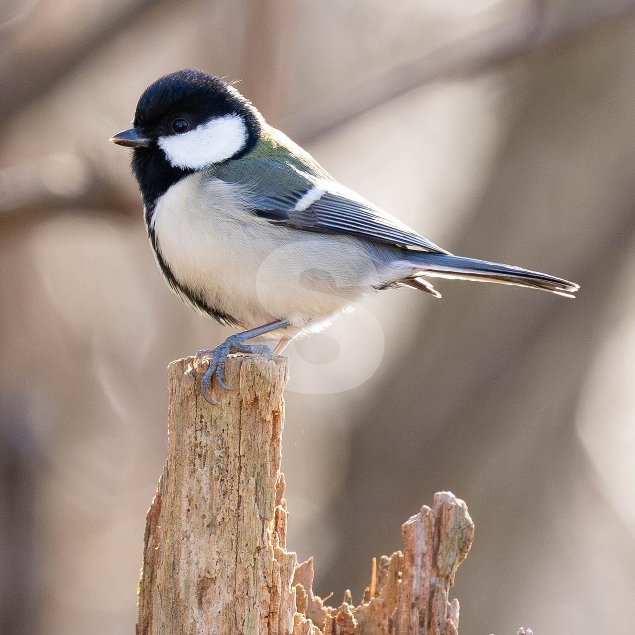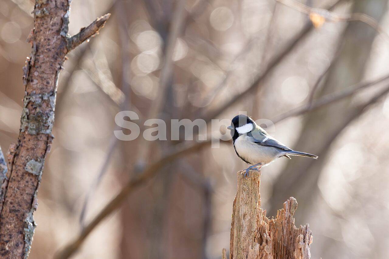 被写体:朽木に止まり辺りを伺うシジュウカラ