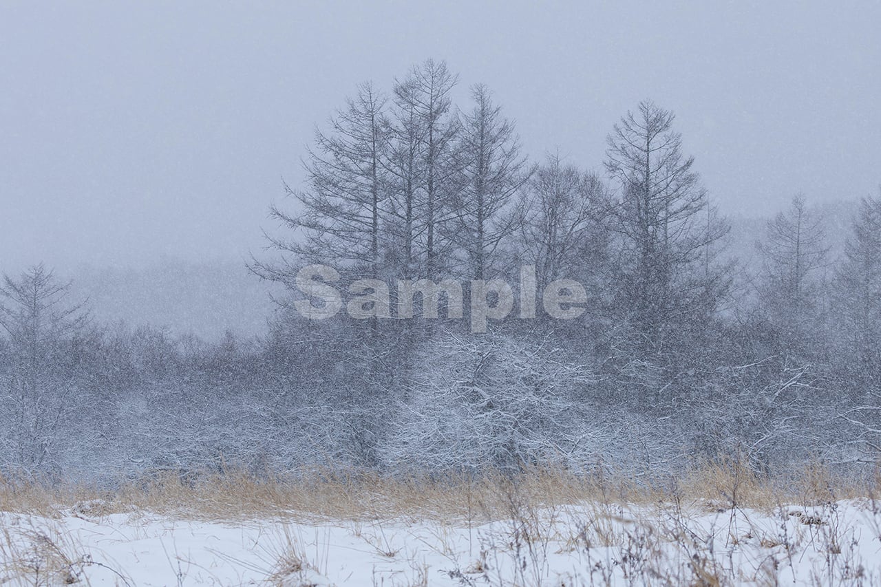 テーマ:雪の降り頻る高原のカラマツ林