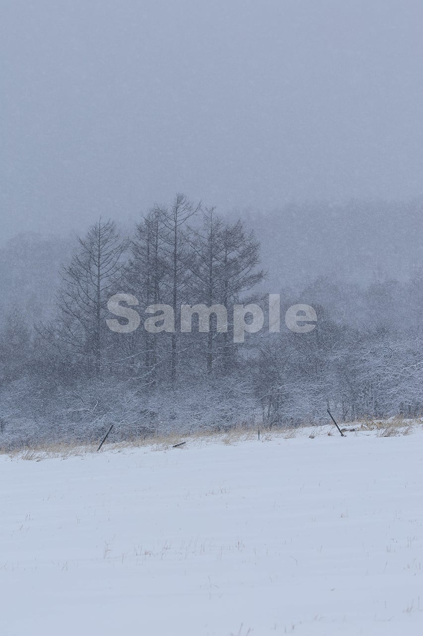 テーマ:風雪に覆われた牧草地と林縁のカラマツ