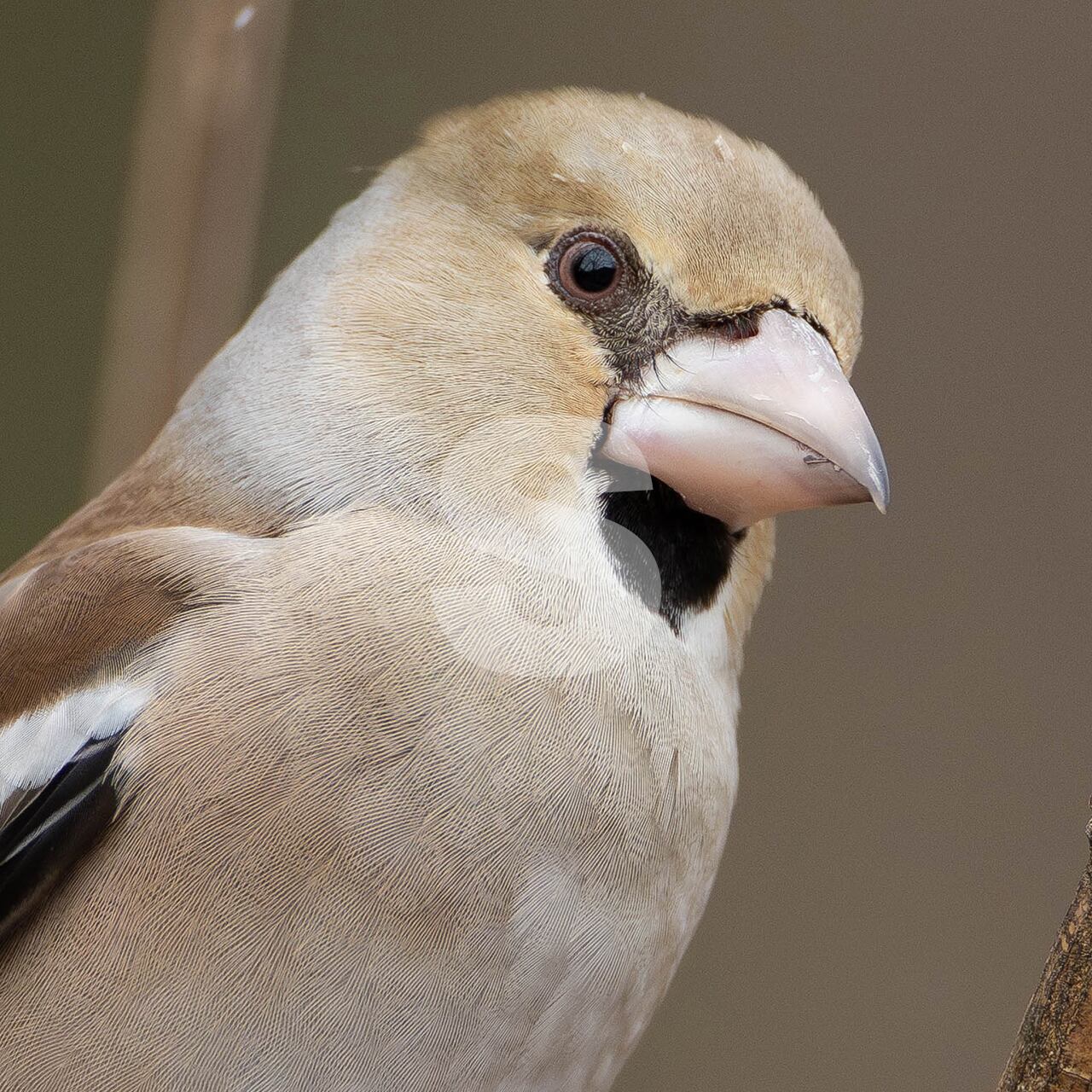 被写体:冬の森の灌木に止まるメスのシメ