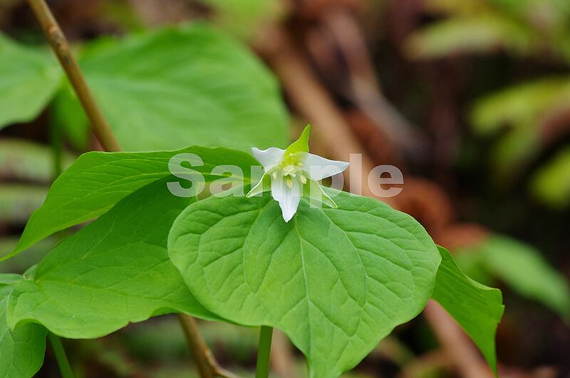 被写体:登山道斜面に咲くシロバナエンレイソウ