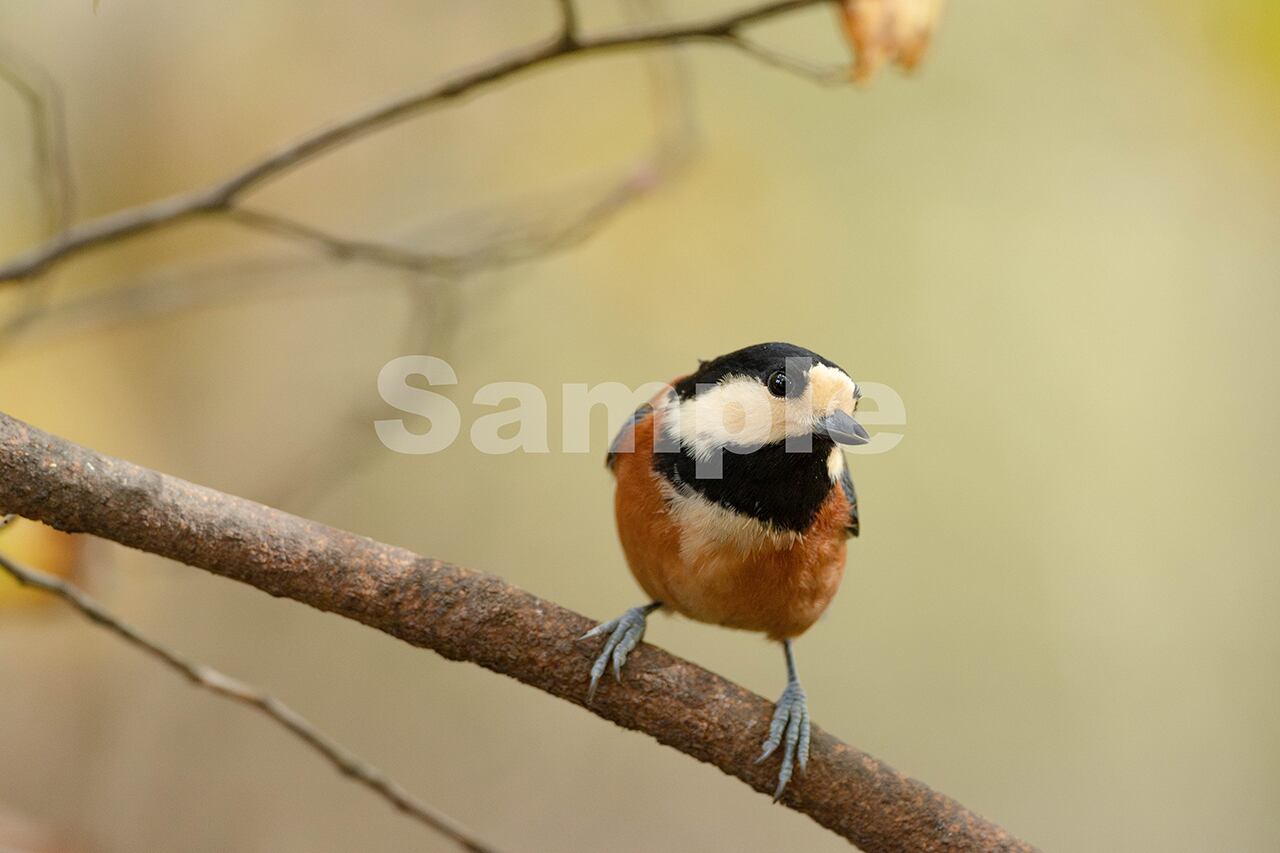 被写体:黄葉の終わりかけた枝上で辺りを伺うヤマガラ
