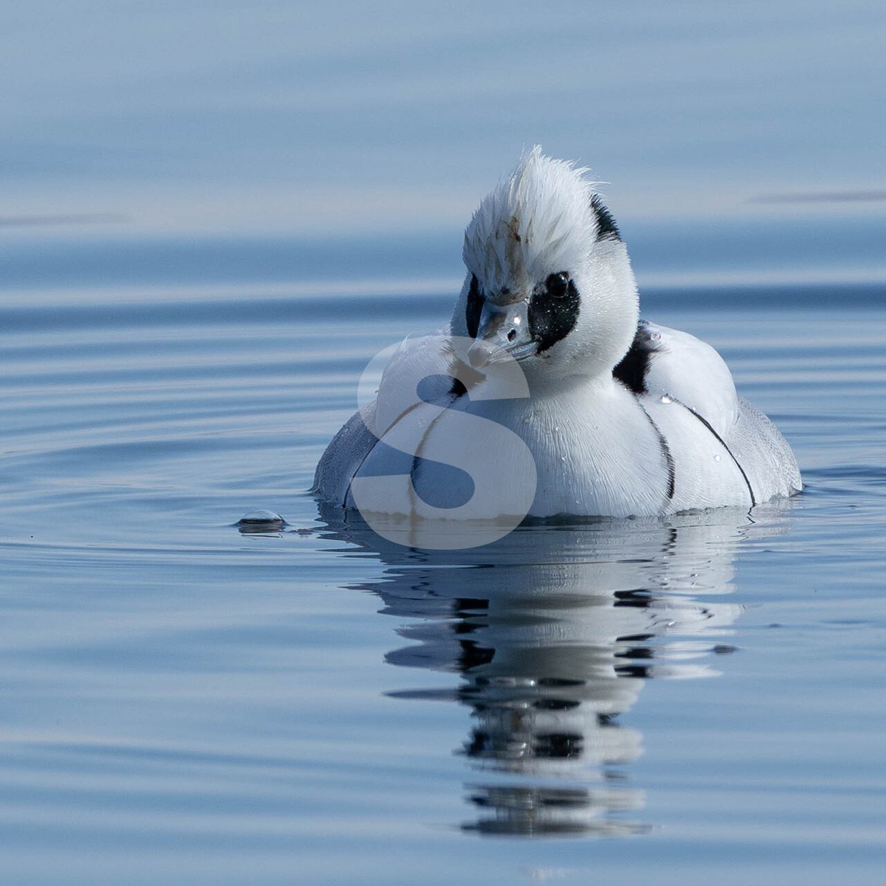 被写体:湖面に一羽で浮かぶオスのミコアイサ