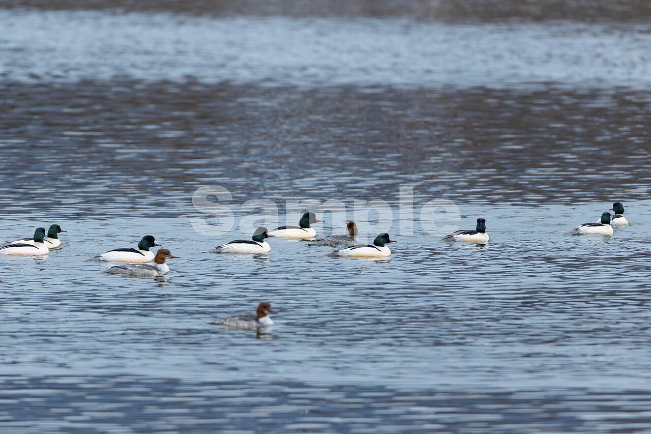 被写体:湖に浮かぶカワアイサの群れ(諏訪湖)