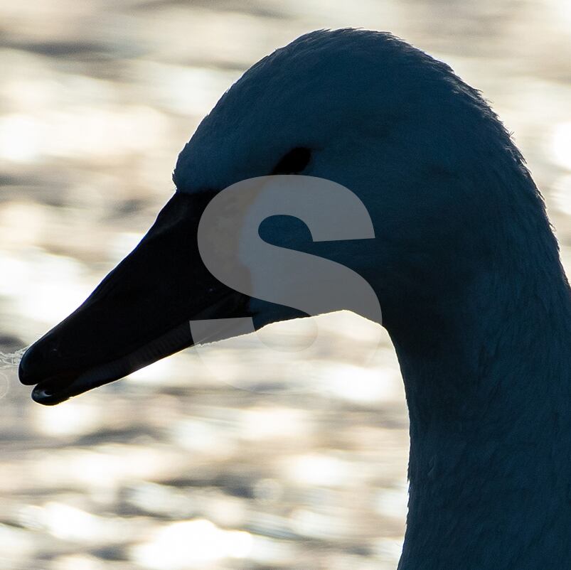 被写体:午後の逆光にシルエットとなったコハクチョウ