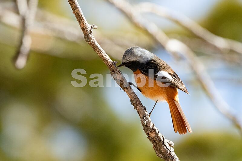 被写体:湖畔の公園の街路樹に止まるジョウビタキ