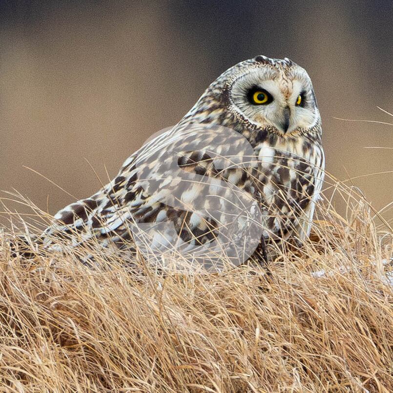 被写体:高原の草地で休むコミミズク