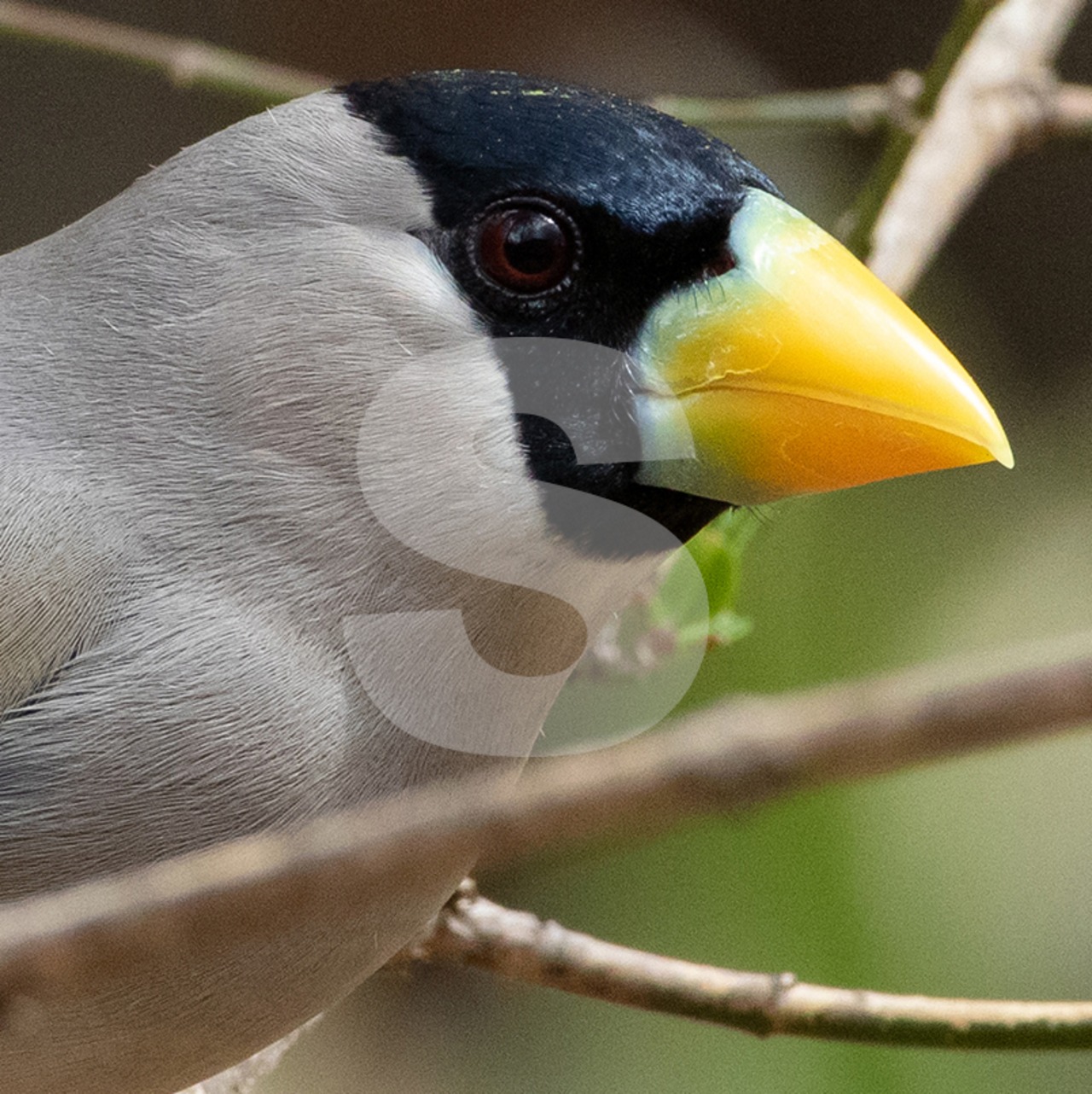 被写体:芽吹き始めたマユミの枝で休むイカル