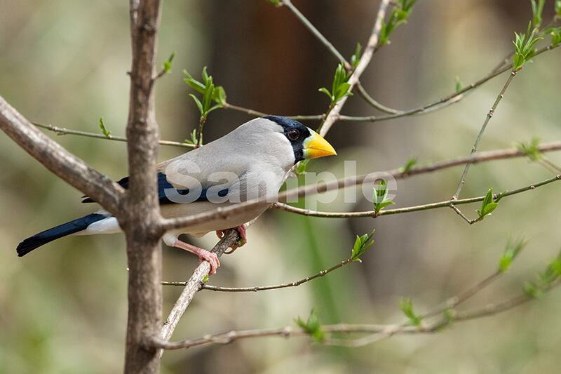 被写体:芽吹き始めたマユミの枝で休むイカル