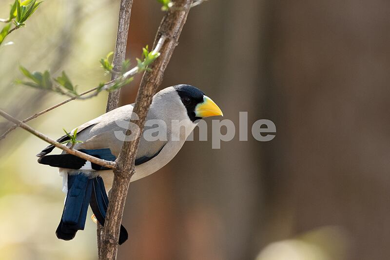 被写体:芽吹き始めたマユミの枝で休むイカル