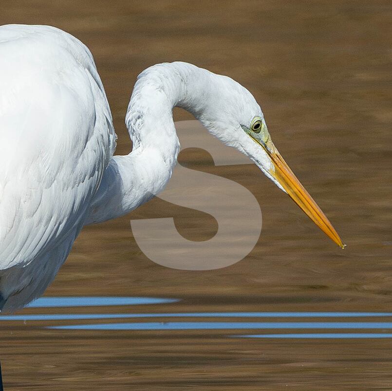 被写体:池の浅瀬で獲物を狙うダイサギ