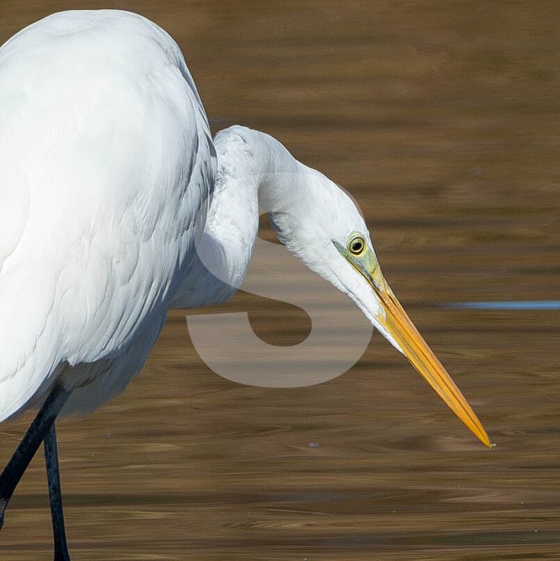 被写体:池の浅瀬で獲物を狙うダイサギ