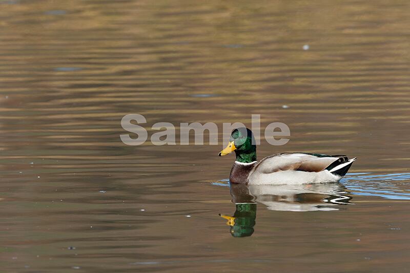 被写体:池の中をゆったりと泳ぐマガモのオス