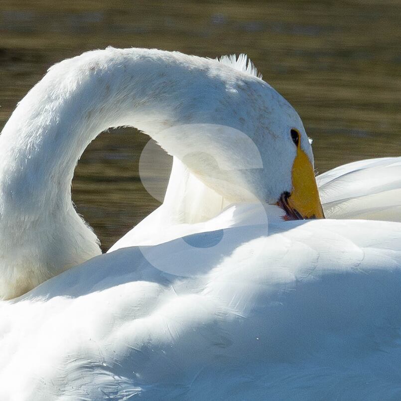 被写体:羽繕いをする渡ってきたばかりのコハクチョウ