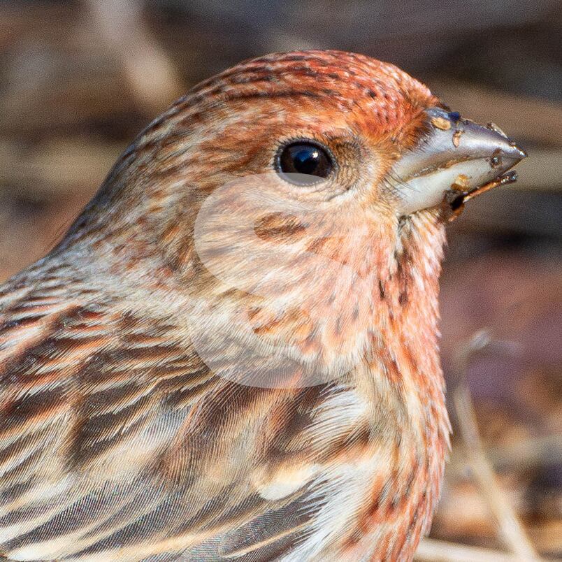 被写体:地上に降りて草の種を啄むオオマシコ(メス)