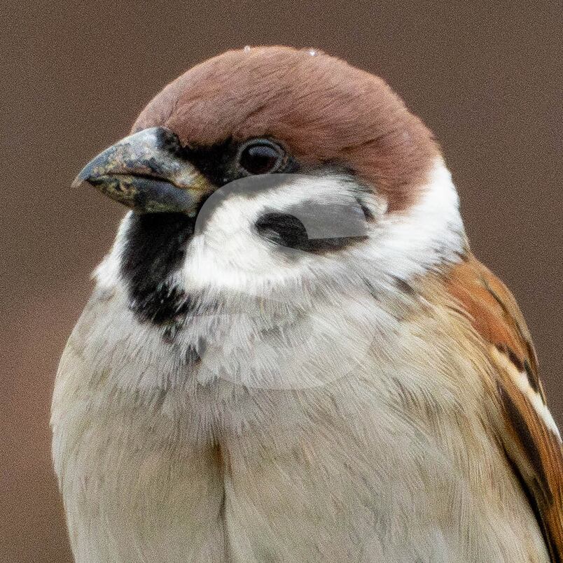 被写体:雪のちらつく中白樺の枝で休むスズメ