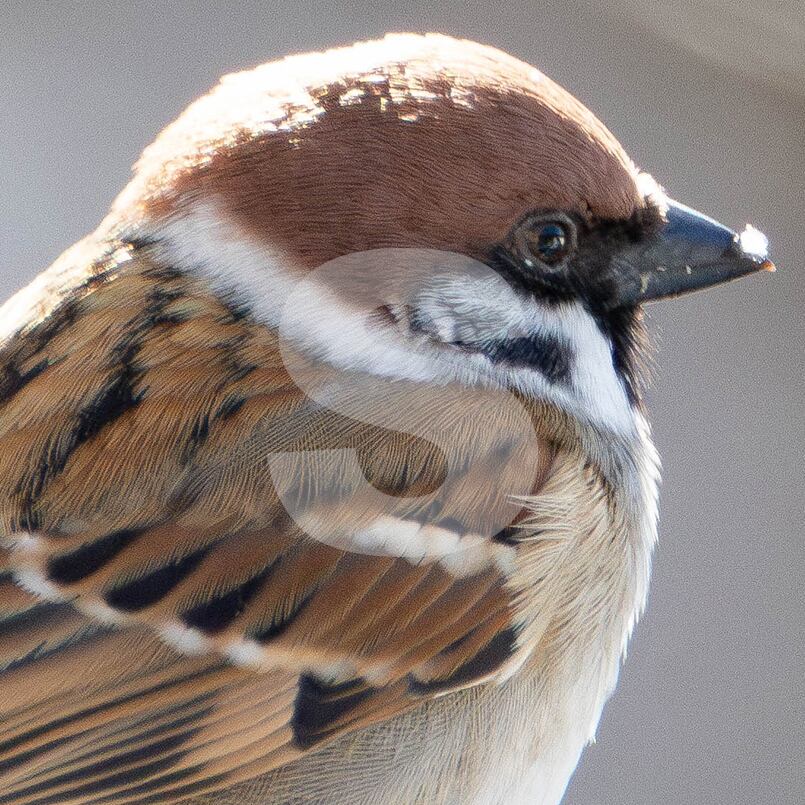 被写体:降雪のあった翌朝白樺の枝で休むスズメ