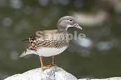 被写体:冬の保護エリアの岩の上で寛ぐオシドリのメス