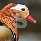 被写体:冬の保護エリアの岩で寛ぐオシドリのオス