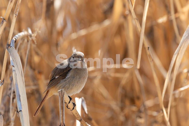 被写体:諏訪湖湖岸のアシに止まるジョウビタキ(メス)