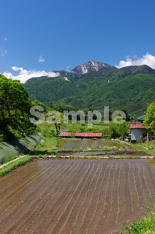 テーマ:田植えの終わった水田を前景にした雪の残る初夏の甲斐駒ヶ岳
