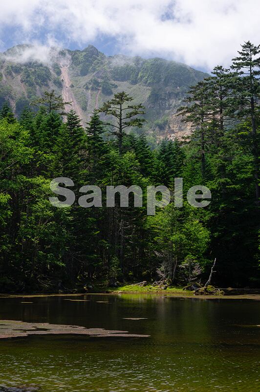 テーマ:夏の日差しが照り付けるみどり池と樹林越しに見る天狗岳