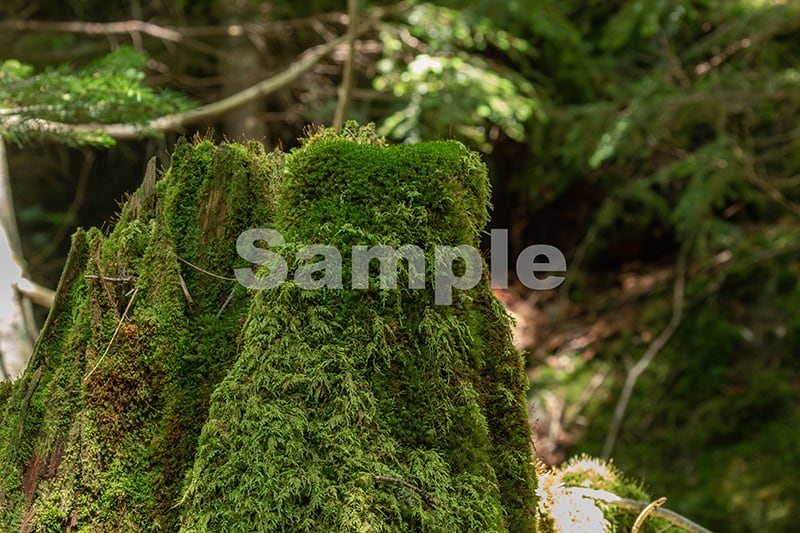 テーマ:みどり池から本沢温泉に向かう登山道沿いの苔に覆われた朽ちた切り株