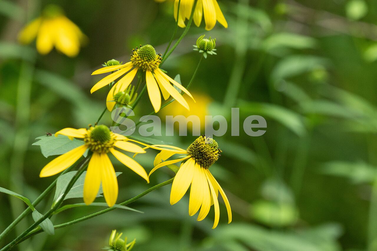 被写体:林間の遊歩道脇を彩るオオハンゴンソウ
