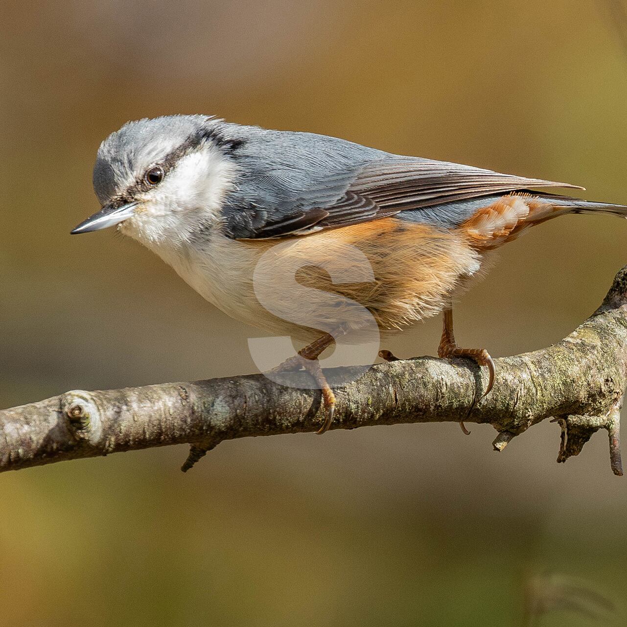 被写体:秋色の森をバックに葉のほとんど落ちたシラカバの枝に止まるゴジュウカラ
