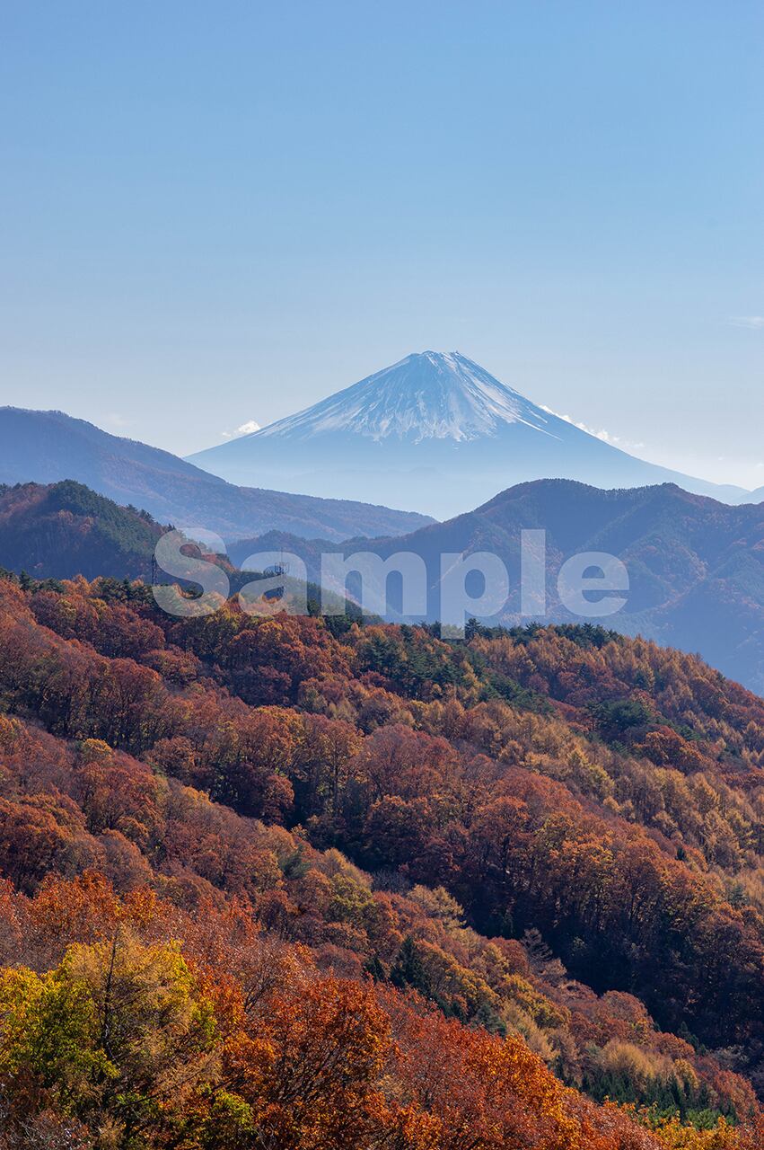 テーマ:晩秋のナラとカラマツの紅葉越しに八ヶ岳高原大橋から望む富士山