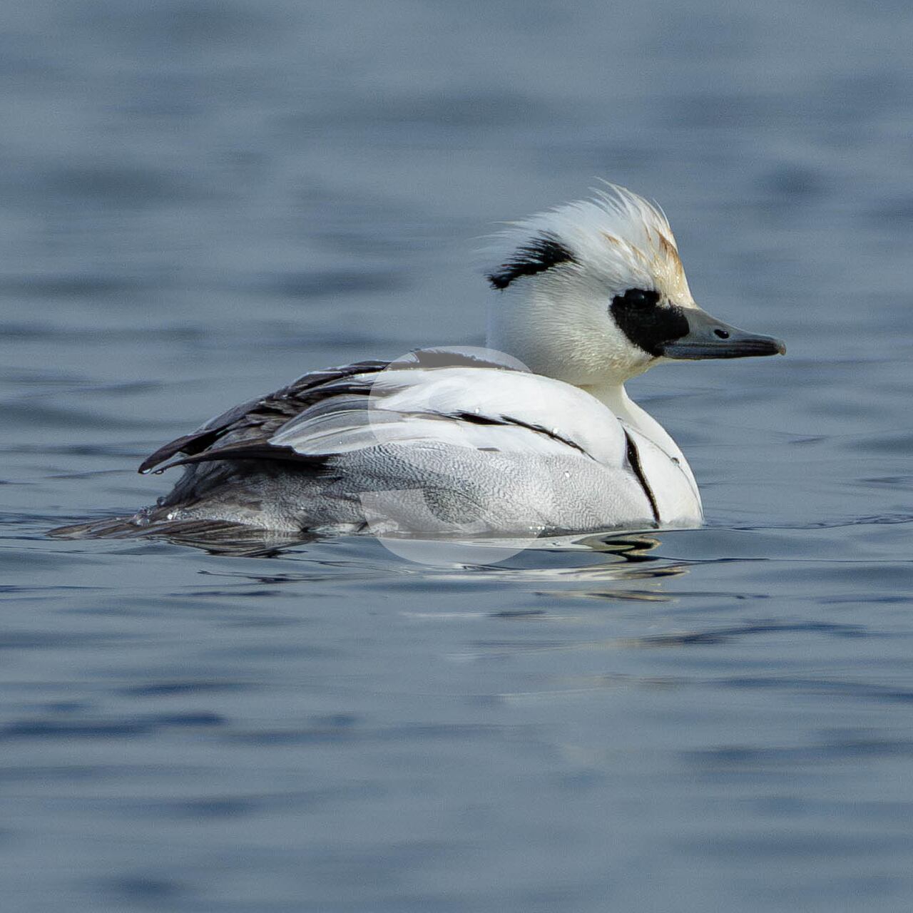 被写体:湖面に浮かぶミコアイサのオス(諏訪湖)